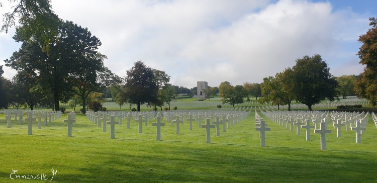 Et puis le week-end a continué avec la visite du plus grand cimetière américain en Europe de la seconde guerre mondiale. Et décidément niveau émotion on est servi encore, voir toutes ces tombes, en nombre incroyable…. se prendre comme un claque…. rien de nouveau, je sais que la guerre ça tue, et peu importe que ce cimetière soit américain ou d’une autre nationalité, c’est la mort matérialisée par ces tombes qui vient à ce moment-là me bousculer et rendre cette mort et cette noirceur de la guerre encore plus réelle.