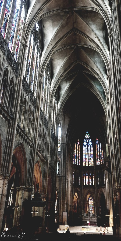 J’adore lors de mes voyages aller dans des lieux spirituels ou religieux, notamment les églises ou cathédrales etc… Encore une fois, je fus surprise de ma première pensée en rentrant dans cette grandiose cathédrale de Metz. Face à cet imposant ouvrage, j’ai senti le poids de l’histoire de la religion chrétienne (comme certainement d’autres religions) et de comment des idées ou des préceptes ont pu être imposés à différents moments de l’histoire. Et comment sûrement des gens étaient morts pour construire cette magnifique cathédrale (cela m’a d’ailleurs fait penser aux personnes mortes pour faire des stades de foot au Qatar, mais ça c’est encore une autre histoire,…).